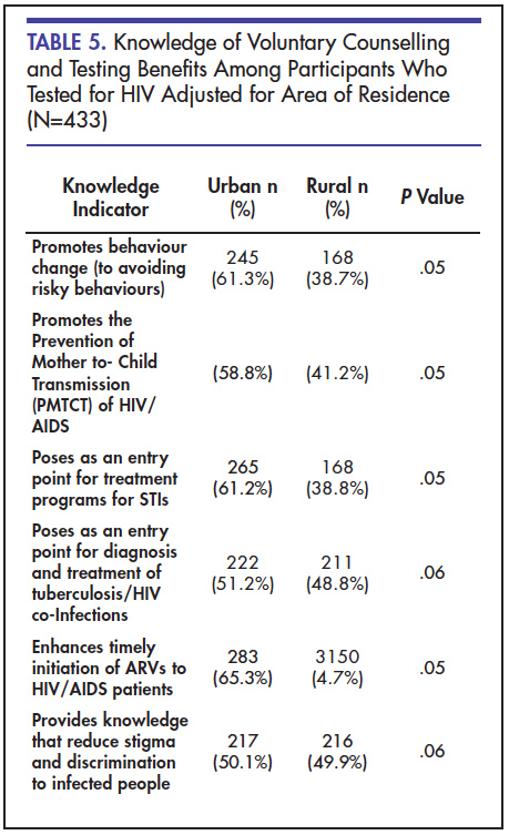 Conclusion: In urban areas, knowledge of the benefits of HIV testing is higher than in rural areas. Overall stigma remains the most salient barrier to HIV testing and interventions that address this, and other structural drivers for stigma need to be addressed in order for people’s willingness to test to increase. Finally, health systems need to be strengthened to further encourage testing and be ready to provide quality and non-discriminatory services once people’s willingness to test becomes apparent.