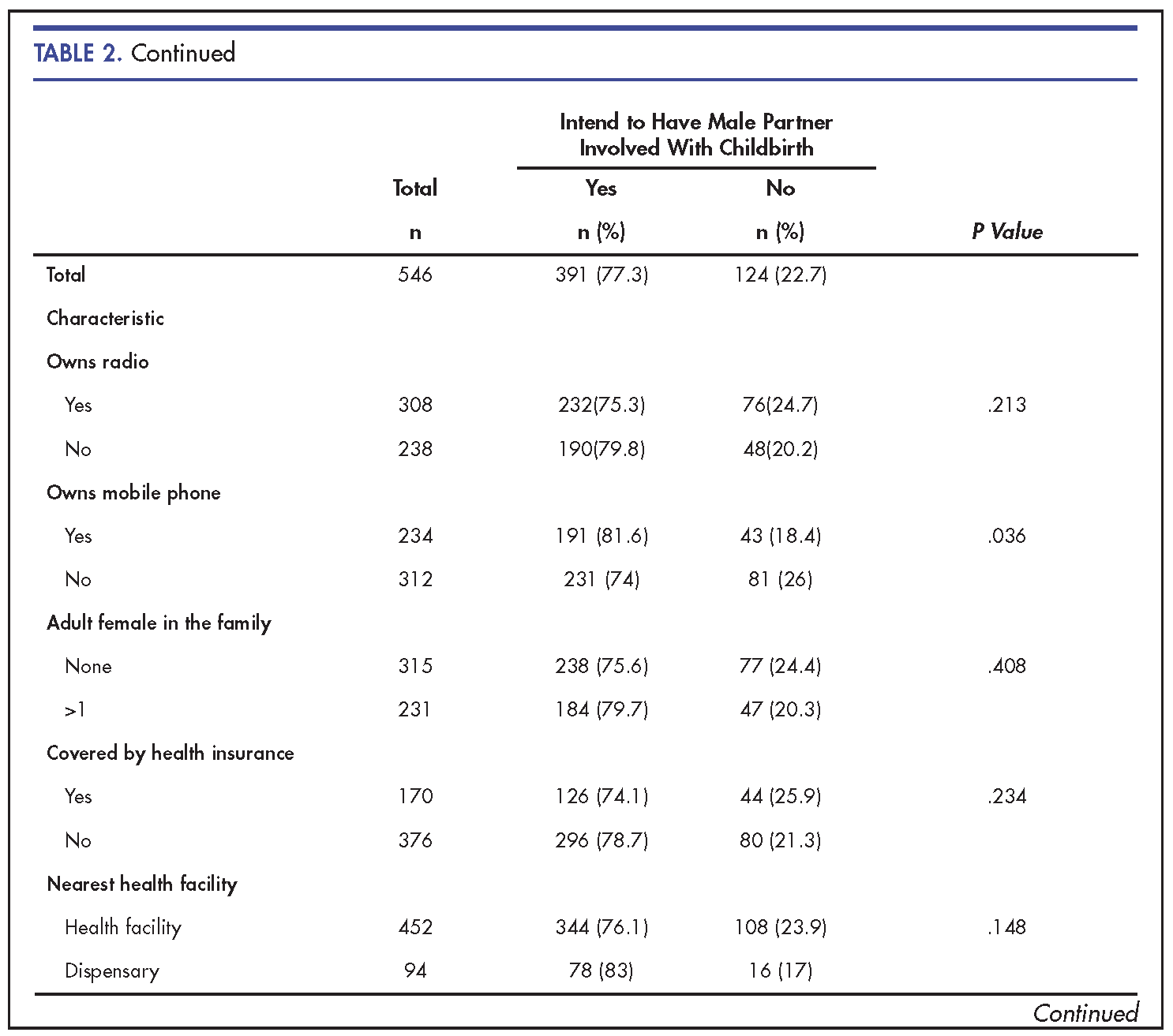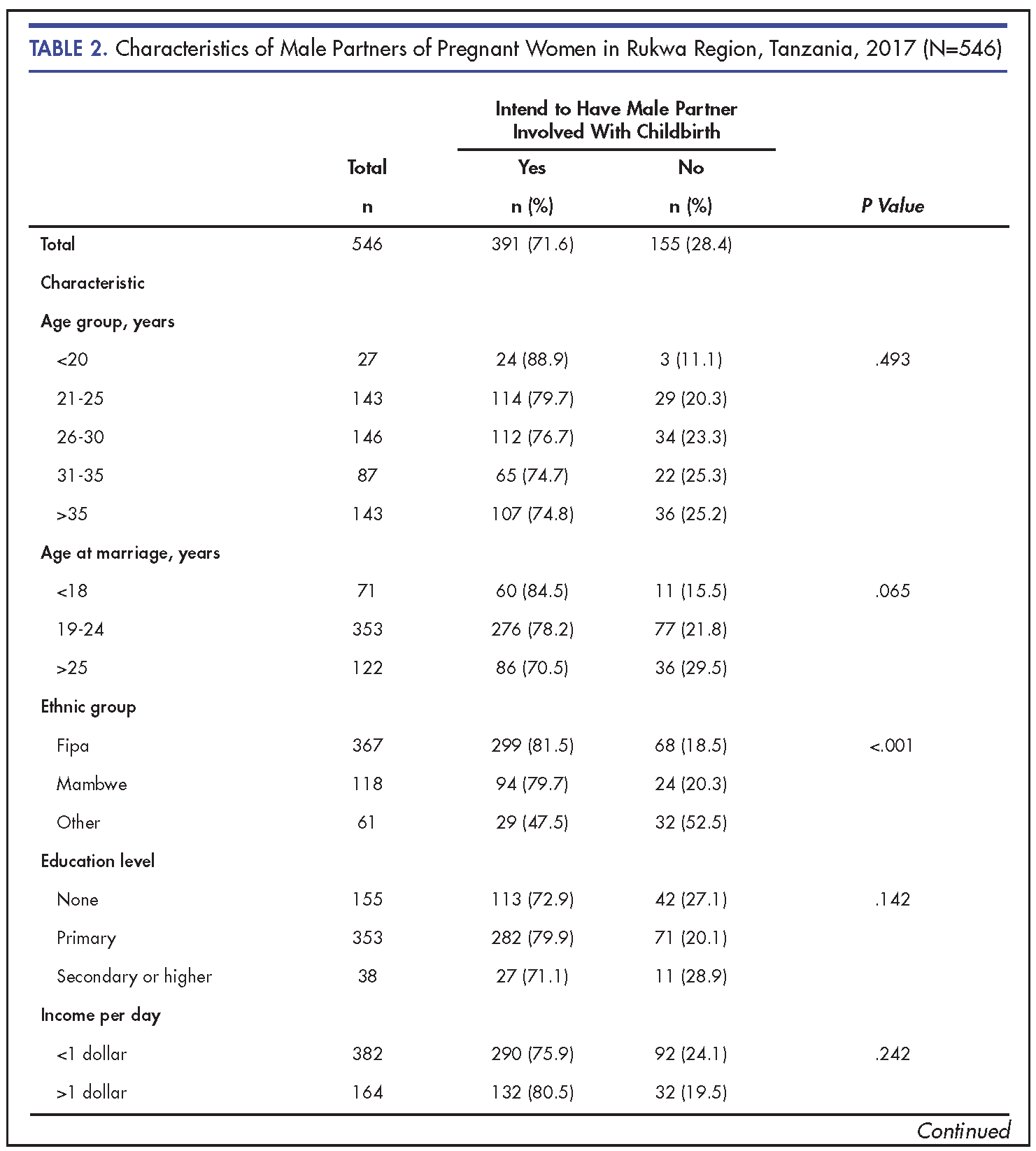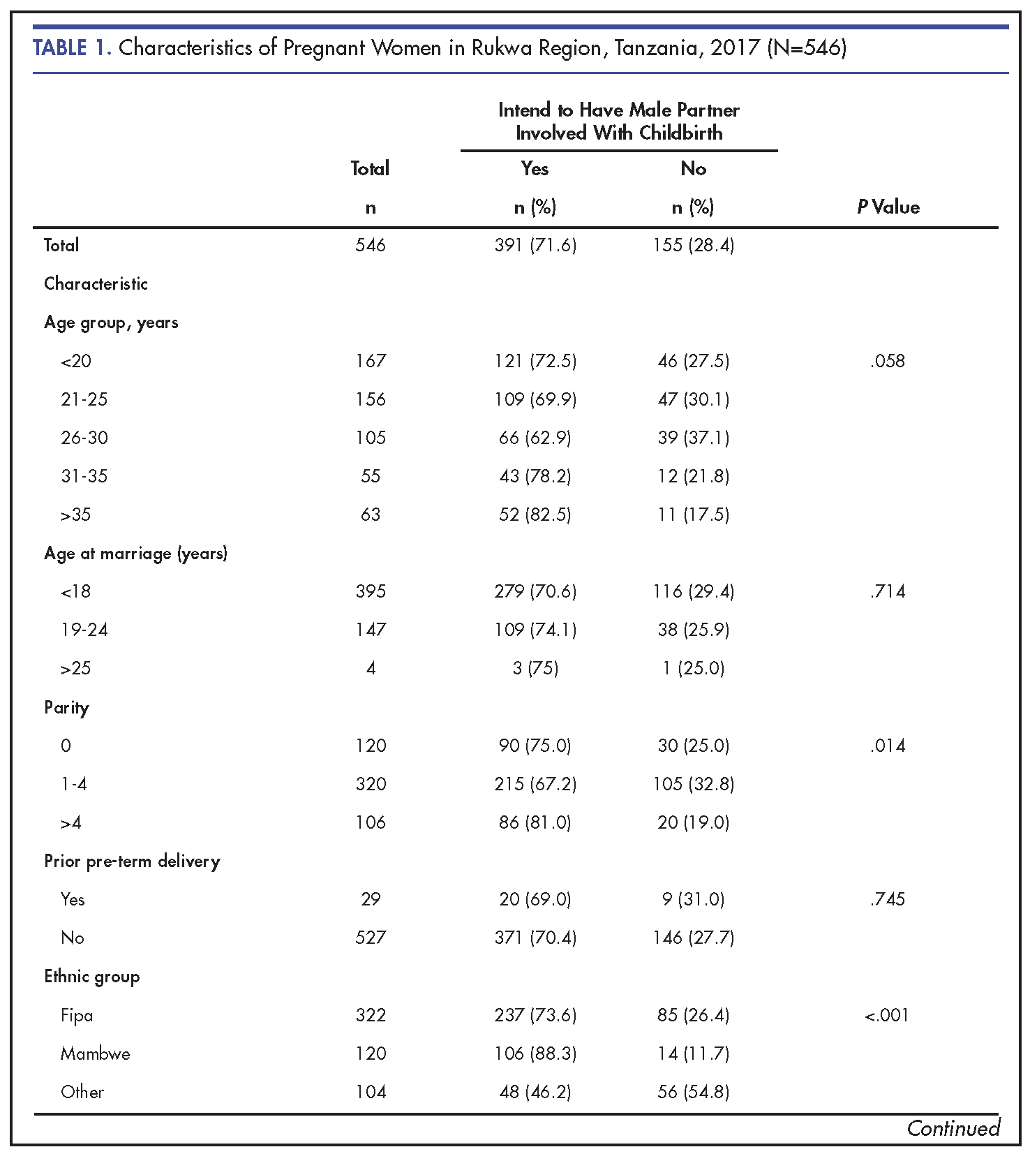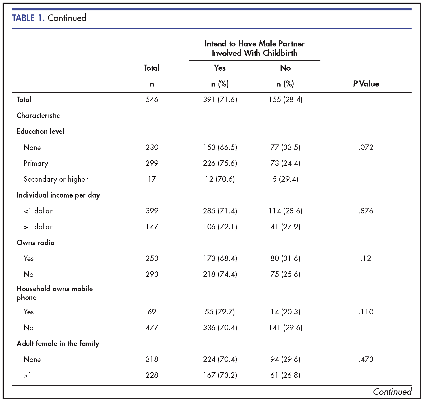 Conclusion: More male partners had the intention to accompany their spouses during childbirth compared to their female partners. Male attitudes and subjective norms may be influential in determining male involvement during childbirth in rural African settings.