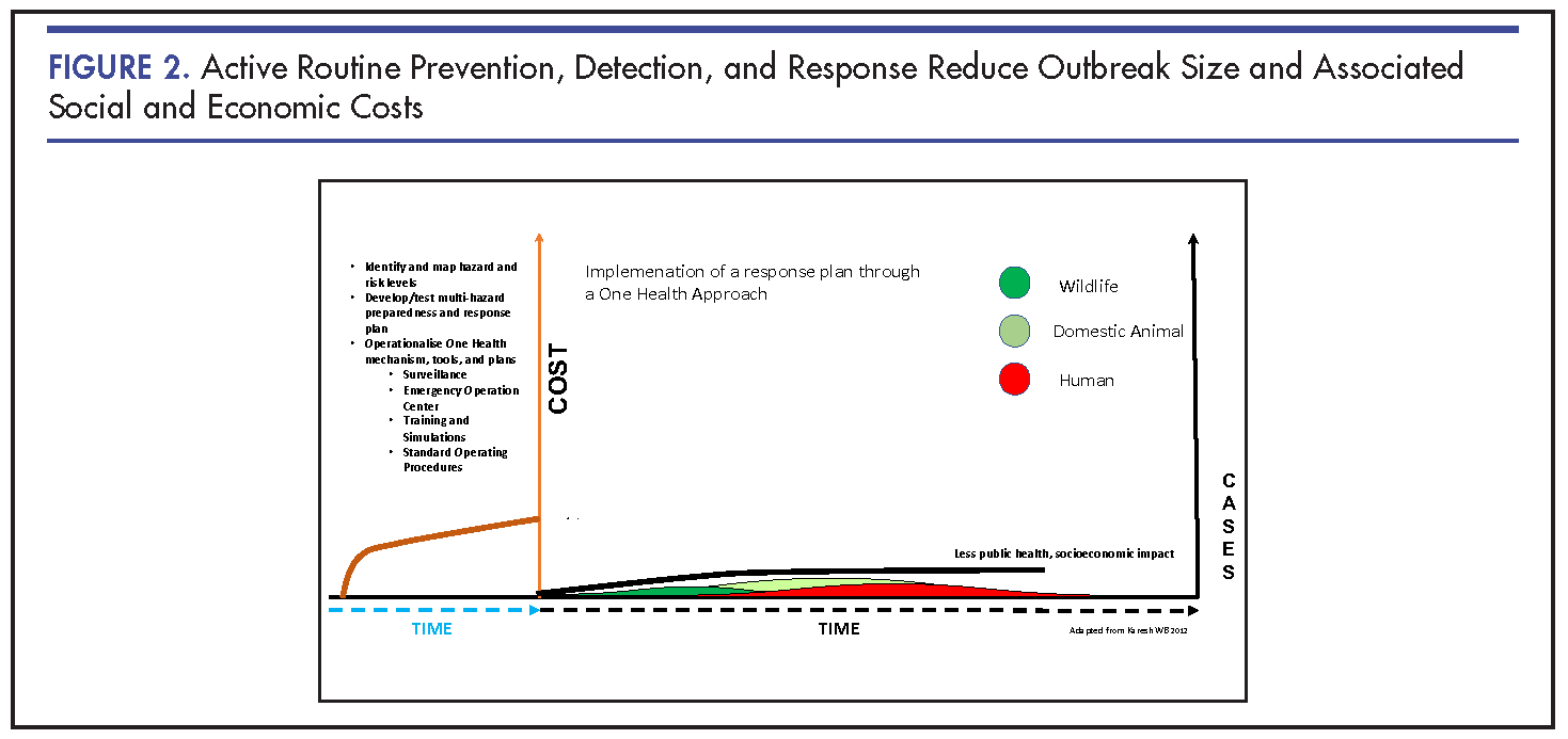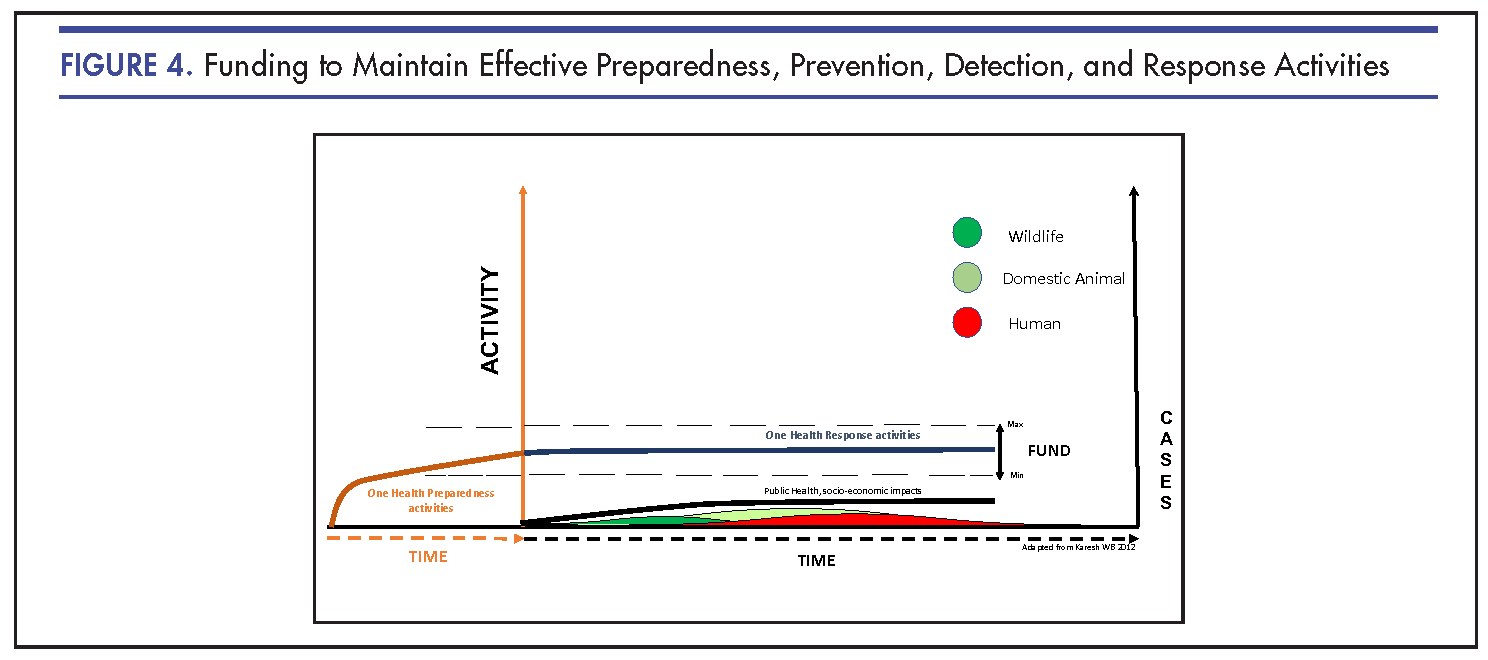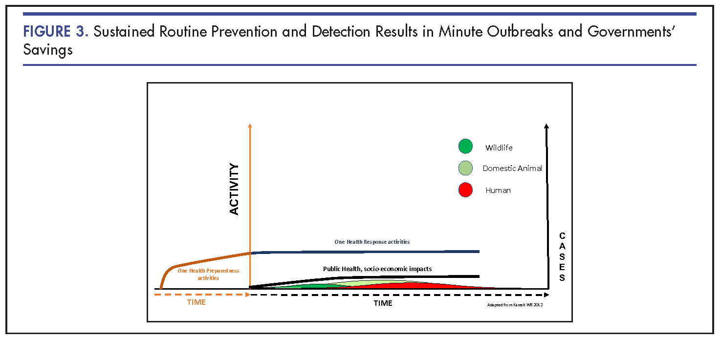Recommendations: Governments should (1) allocate adequate national budgets for health honouring the Abuja and related commitments; (2) own and maintain capacities developed through International Development Aids, OH networks, research consortia and projects; (3) establish a regional health security threats prevention fund. The global community and scientists should (1) consider broadening existing health emergency funds to finance the prevention and containment outbreaks at the source and (2) Strengthen economic analyses and case studies as incentives for governments’ budget allocations to prevent health security threats.