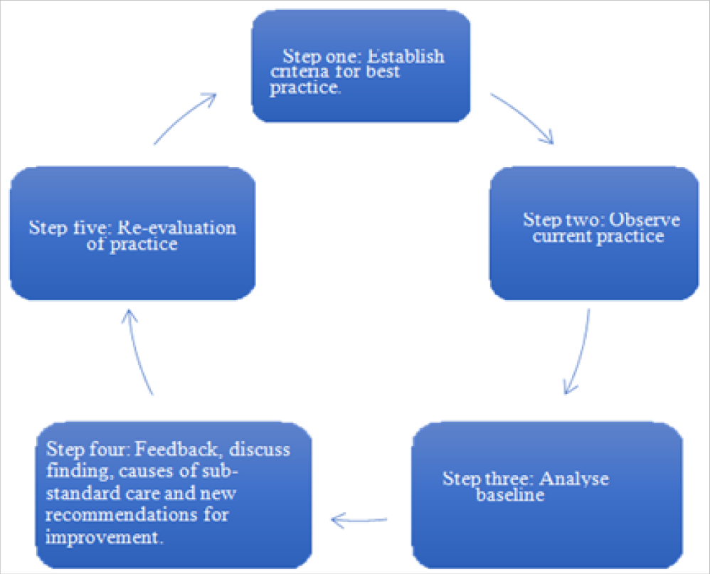 Background: Healthcare associated infections is a global burden and is one of the main causes of maternal and neonatal morbidity and mortality during the time of labour when admitted to the hospital. Healthcare workers´ hands are in most cases the vehicle for transmission of microorganisms from patient to patient.Good hand hygiene practices at the bedside are a simple way of reducing healthcare associated infections. The objective was to assess the impact of a criterion-based audit on infection prevention performance and knowledge during vaginal delivery at a hospital in Tanzania. The quantitative findings were discussed with staff to identify barriers and solutions to quality improvement.