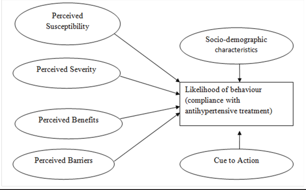 Background: Hypertension remains a public-health challenge globally. Its prevention, early detection, proper and adequate treatment and control should be given high consideration to prevent occurrence of cardiovascular disease and stroke. This study is guided by the Health Belief Model (HBM) to investigate the influence of treatment compliance using HBM constructs among elderly hypertensive patients in 3 regional hospitals in Dar es Salaam, Tanzania.