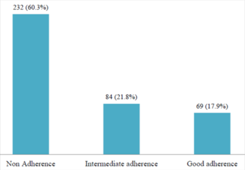 Results: A total of 385 asthma patients were enrolled in the study. Females were 206 (53.5%), 232(60.3%) were nonadherent to medications and 283(73.5%) had poorly controlled asthma. Lack of health insurance, fear of medication side effects, being too busy, having alternative medication for asthma and incorrect inhaler technique were significantly associated with non-adherence to inhalers, all p-values <.05.