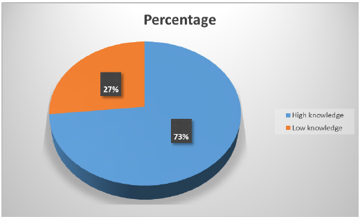 Method: The study was analytical cross-sectional study design. A total sample of 176 nurses working in the maternity block was enrolled in the study. A census sampling technique was used to get 176 nurses. A closed-ended structured questionnaire was used to collect data. Statistical Package for the Social Sciences (SPSS) version 26 was used for data analysis.Knowledge was categoried into low and high knowledge,two, less than 50% had low knowledge and above 50% had high knowledge. Inferential analysis using a logistic regression model was used to establish factors associated with knowledge.