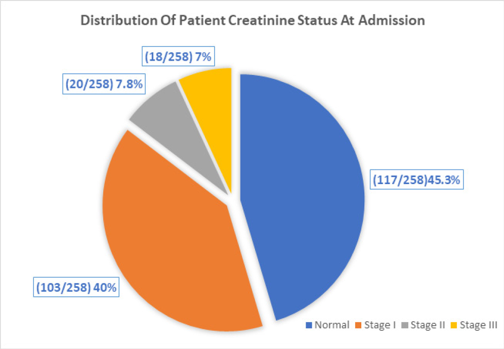 Results: The study enrolled a total of 258 women with PE-E. The magnitude of AKI was found to be 141(54.7%,) out of 258 participants, of which Kidney Disease Improving Outcomes (KDIGO) stage 1 accounted for 103 (73%) stage 2, 20 (14.2%) and stage 3, were 18 (12.8%). Of these, 141 participants with AKI, 101 (71.6%) resolved within 7 days of delivery, 12 (8.5%) persisted beyond 7 days after delivery, and 28 (19.8%) worsened. Serum creatinine stages 2 and 3 at admission, HIV positive status, and informal education status were highly associated with persistent/worsening AKI stage.